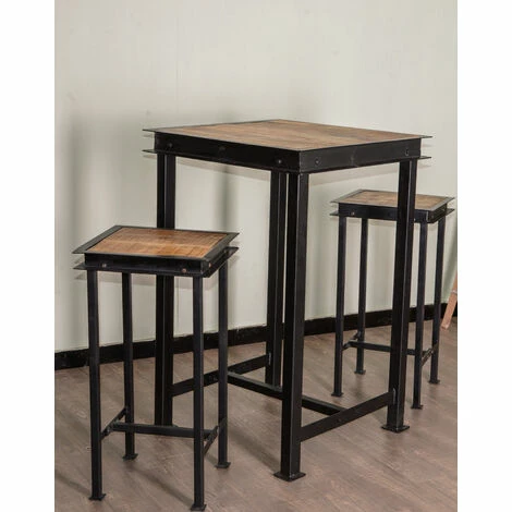 Couleurs : Bois, Naturel, Noir. Matières : Bois exotique, Bois massif, Metal. Meuble monté : Non. Styles : Loft/Usine, scandinave/vintage. Hauteur : 105 cm. Largeur : 70 cm. Longueur : 70 cm. Table extensible : Non. Forme : Carrée.