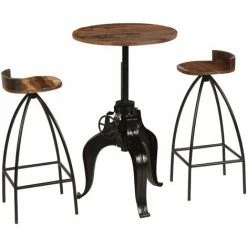 L’ensemble est fait de bois de récupération massif et d’un cadre en acier robuste et est très stable et durable. Le bois de récupération provient de solives, de planchers et de poutres de soutien de vieux bâtiments démolis, et peut être composé de différents types de bois comme le pin, le teck, le hêtre, le chêne, le cèdre, le bois de manguier, l’acacia, etc. Cela signifie que le bois de récupération conserve les caractéristiques de ces différents types de bois. Le bois de récupération est déjà vieilli, patiné et séché, donc il ne rétrécit pas et ne se plie pas. La hauteur de la table est réglable pour une utilisation pratique. Les dossiers et les repose-pieds s’ajoutent au confort d’assise des chaises. Les cadres en acier contribuent à la stabilité de l’ensemble ainsi qu’à son style industriel. Chaque étape du processus de fabrication est réalisée avec le plus grand soin, que ce soit la recombinaison, le polissage, la peinture ou la laquage. L’assemblage est facile. La livraison comprend 1 table de bar et 2 chaises de bar.
