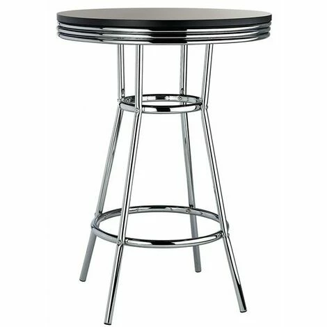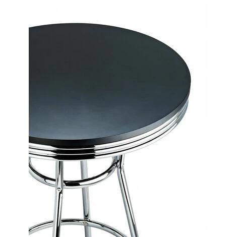 Diamètre global du tableau supérieur 75 cm – Plage de hauteur globale 100,5 cmCaractéristiques: style classique des années 50 | Trim chromée du designer | Facile à nettoyerMécanisme: cette table de barre est une hauteur fixe et ne pivote pasProtection au sol: cet article est fourni avec des bouchons de plancher protecteurs