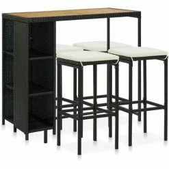 Cet ensemble de bar de jardin a un design élégant et sera le point de mire de votre jardin, patio ou terrasse. Fabriqué en résine tressée résistante aux intempéries et imperméable, cet ensemble de bar est facile à nettoyer, résistant à l’usure et adapté à une utilisation quotidienne. Le cadre en acier enduit de poudre rend la table et les tabourets très robustes et durables. Grace à la construction légère, tous les articles sont faciles à déplacer. Les coussins de siège amovibles et épais sont très confortables. Les housses des coussins avec fermetures éclair peuvent être facilement enlevées et lavées. Remarque : nous recommandons de couvrir l’ensemble pendant la pluie, la neige et le gel.