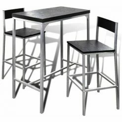 Cet ensemble de bar à petit-déjeuner élégant et moderne allie style et fonctionnalité. Les lignes épurées et la conception compacte le rendent idéal pour les appartements ou autres lieux comme les cafés, les pubs ou les vérandas. Les tabourets peuvent être rentrés sous la table lorsqu’ils ne sont pas utilisés pour économiser plus d’espace. Cet ensemble de bar à petit déjeuner est fabriqué en MDF de haute qualité en noir, facile à nettoyer et convient à tout décor. Les cadres en acier de qualité rendent l’ensemble très stable et durable. L’assemblage est assez simple. La livraison comprend 1 table haute et 2 tabourets.