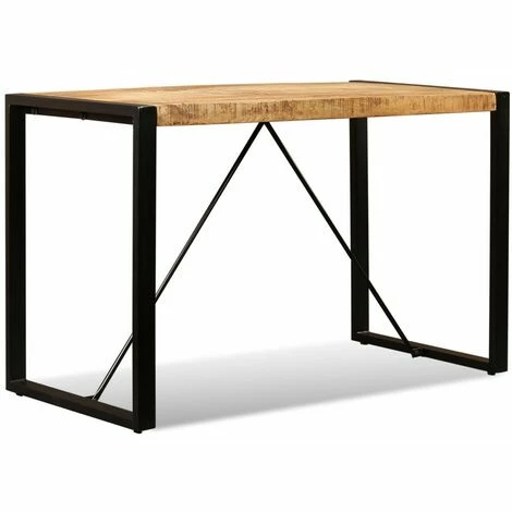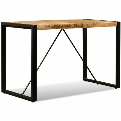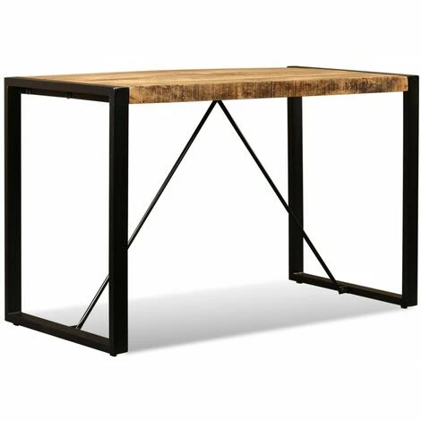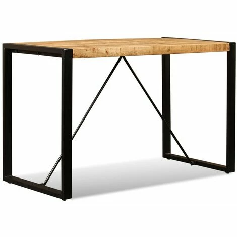 Cette table de salle à manger frappante dans le style industriel sera un ajout distinctif à votre cuisine ou salle à manger. Cette table de dîner est faite de bois de manguier brut solide, stable, durable et beau, et l’artisanat ajoute au style rétro spectaculaire de la table. Les jambes en acier complètent le look industriel. Chaque étape du processus est réalisée avec le plus grand soin, qu’il s’agisse de polir ou de vernir. L’assemblage est facile. Remarque importante : Le bois de manguier brut montre des grains naturels, rendant chacune de nos tables à manger unique et légèrement différente de la suivante ; la livraison est aléatoire.