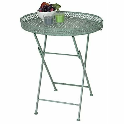 Table pliante HWC-C39, table de jardin, métal, vert antique- Contenu de la livraison : 1x table pliante- Avec poignées de transport sur les côtés – En forme de plateau- Poids (env.) : 3,7 kgDimensions (env.) : Hauteur : 71 cmLargeur : 60 cmProfondeur : 44 cmHauteur du bord : 6 cm Cette jolie table pliante, finement décorée et élégante, impressionne par sa forme gracile et ses détails. De par son pliage facile et pratique, cette table se laisse facilement ranger. Grâce au bord de la table, plus rien ne risquera de tomber.