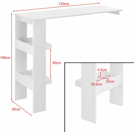 Cette table de bar se fait remarquer non seulement par sa construction originale mais grâce à son design moderne. Elle sera un accessoire fonctionnel et esthétique de votre maison. D’un côté, cette table de bar doit être montée contre le mur. De l’autre côté, vous pourrez profiter des espaces de stockage pratiques.