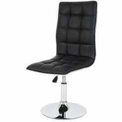Chaise de salle à manger HWC-C41, chaise de cuisine, pivotante et réglable en hauteur, similicuir ~ noir- Rotation à 360°.- Réglable en hauteur à l’infini- Dossier très haut- Les coins arrondis- Garniture au look chrome- Un rembourrage confortable- Coutures décoratives- Avec protecteur de plancherCe fauteuil pivotant chic apporte un nouveau glamour aux quatre murs de votre maison. Grâce à son design noble, cette chaise de salon peut être combinée avec de nombreux styles d’ameublement différents et attire toujours l’attention.Non seulement chic et noble, mais aussi confortable : le rembourrage souple augmente énormément le confort d’assise du fauteuil pivotant rembourré et vous permet de rester extrêmement à l’aise même pendant plusieurs heures.Dimensions (environ) :Hauteur totale : 88-102 cmlargeur totale : 41 cmprofondeur totale : 42 cmhauteur d’assise : 42-56 cmprofondeur d’assise : 41 cmLargeur d’assise : 42 cm Hauteur du dossier (mesurée à partir d’assise) : 49 cmØ base : 41 cm Poids (environ) : 7,4 kgMatériaux :Revêtement de la sellerie : similicuir (100 % polyuréthane)Base : métal chroméCette chaise de salle à manger impressionne par son motif de losanges piqués sur le rembourrage du siège et par sa garniture d’aspect chromé. Solide, chic et au design efficace, cette série de chaises respire l’élégance simple. Un design noble et un confort d’assise élevé font de la chaise une expérience. Ce fauteuil polyvalent s’intègre parfaitement dans le salon, la cuisine et la salle à manger et représente un sentiment de vie individuel. Moderne, pratique et confortable, ce fauteuil répondra facilement à toutes vos exigences.Également disponible séparément en set de 2 et en set de 6. Exemple d’utilisation : Informations complémentaires :Notre objectif est d’obtenir un excellent prix avec une bonne qualité.