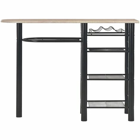 Fabriqué en bois et en acier durable, cet ensemble de bar en 3 pièces se distingue par sa polyvalence et constituera un supplément distinctif aux maisons, aux jardins, aux bars, aux pubs ou aux restaurants. Fabriqué en bois durable, les surfaces sont faciles à nettoyer. Les cadres en acier offrent une grande stabilité. Les chaises peuvent être repliées lorsqu’elles ne sont pas utilisées, afin de gagner de la place. De plus, plusieurs tablettes de rangement et un porte-bouteilles de vin se trouvent sous la table pour que vos affaires soient bien organisées et à portée de main. L’ensemble de salle à manger est facile à assembler. La livraison inclut 1 table avec étagères et 2 chaises pliantes.