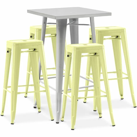 Nouveau 👍 PRIVATEFLOOR Table De Bar Argentée + X4 Tabourets De Bar En Acier Ensemble Bistrot Stylix Design Industriel – Nouvelle édition Jaune Pâle – – Jaune Pâle 😉