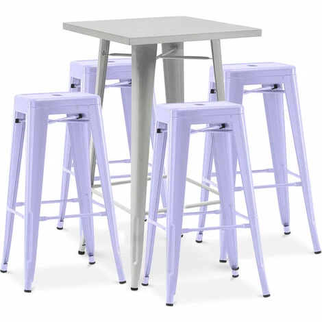 Promo ⭐ PRIVATEFLOOR Table De Bar Argentée + X4 Tabourets De Bar En Acier Ensemble Bistrot Stylix Design Industriel – Nouvelle édition Lavande – – Lavande 👏