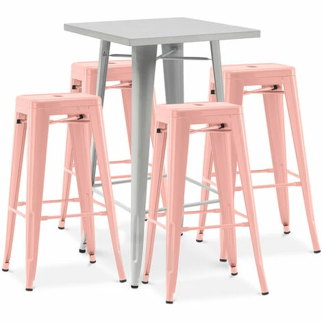 Budget 🔥 PRIVATEFLOOR Table De Bar Argentée + X4 Tabourets De Bar En Acier Ensemble Bistrot Stylix Design Industriel – Nouvelle édition Orange Pâle – – Orange Pâle 🌟