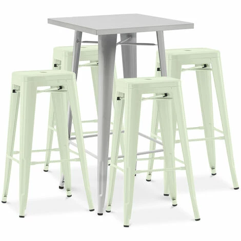 Meilleure vente 💯 PRIVATEFLOOR Table De Bar Argentée + X4 Tabourets De Bar En Acier Ensemble Bistrot Stylix Design Industriel – Nouvelle édition Vert Pâle – – Vert Pâle 🎉
