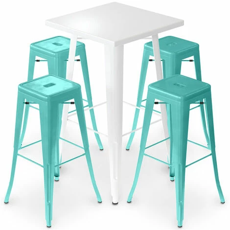 Coupon 👏 PRIVATEFLOOR Table De Bar Blanche + X4 Tabourets De Bar En Acier Mat Set Bistrot Stylix Design Industriel – Nouvelle édition Vert Pastel – – Vert Pastel 🔥