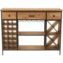 Budget 🤩 LES TENDANCES Armoire Bar Bois Massif Foncé Et Pieds Métal Noir Corai L 60 Cm 🎁
