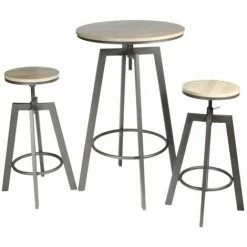 Grosses soldes 🛒 Paris Prix – Table De Bar & 2 Tabourets « réglables » 93cm Gris 👏