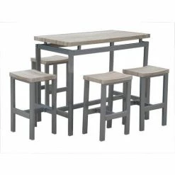 Coupon ❤️ PRICE FACTORY Ensemble Design Table Haute, Bar + 4 Tabourets LE MANS. Set Moderne Type Industriel, Bois Et Métal. – Gris 🔥