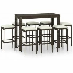 Promo 🧨 TRUE DEAL Meuble De Bar De Jardin 9 Pcs Et Coussins Résine Tressée Marron 👏