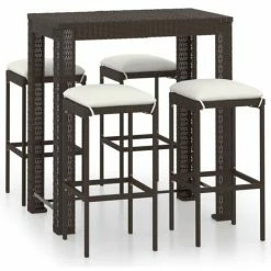 Remise ⭐ TRUE DEAL Meuble De Bar De Jardin 5 Pcs Et Coussins Résine Tressée Marron 😉