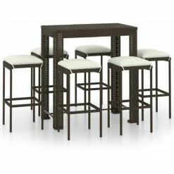Le moins cher 🔥 TRUE DEAL Meuble De Bar De Jardin 7 Pcs Et Coussins Résine Tressée Marron 👏