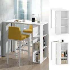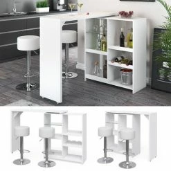 Acheter 🧨 Table De Bar 117cm Blanche Avec 2 Tabourets De Bar Vicco ✔️