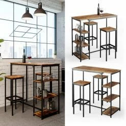 Acheter 👍 Table De Bar „Rodeo » Anthrazit/Goldkraft Avec 2 Tabourets Vicco ✨