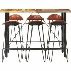 Bon marché ⌛ Ensemble De Bar 7 Pcs Bois De Récupération Et Cuir Véritable Modèle 1 VidaXL 🤩
