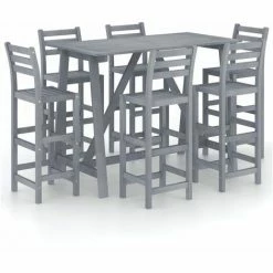 Offres 🌟 VidaXL Ensemble De Bar D’extérieur 7 Pcs Gris Bois D’acacia Massif – Gris 😉