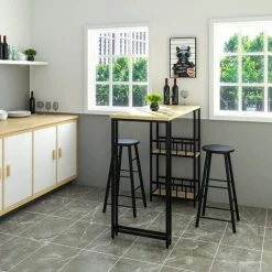 Coupon ⭐ WOLTU 1 Table De Bar+2 Tabourets De Bar Hêtre Foncé.en MDF Et Métal.140x40x100cm 😀