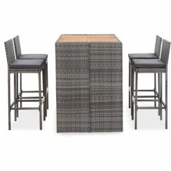 Coupon 🥰 YOUTHUP Ensemble De Bar 5 Pcs Résine Tressée Et Bois D’acacia Gris – Gris 🔔