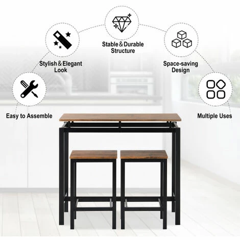 Meilleure affaire 👏 RANIPOBO Ensemble De Table De Bar, Table Et Chaises De Bar En Bois De Fer, Table Et Chaises De Cuisine, Table Haute Et Tabouret De Bar, Restaurant, Table Haute En Bois Fonce, Marron 🌟