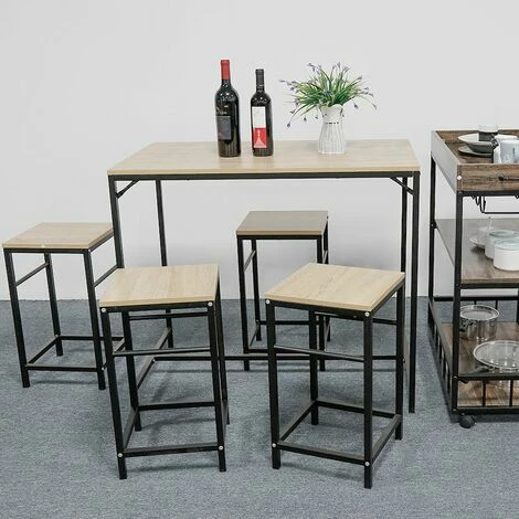 Ensemble table de bar + 4 tabourets avec repose-pieds.