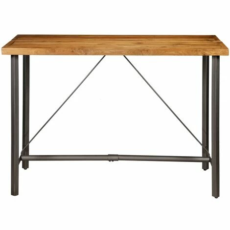 Cette table de bar sera un excellent supplément à votre cuisine ou salle à manger. Le dessus de table est en teck recyclé, un bois solide, stable, durable et magnifique. Les pieds en acier contribuent à la robustesse de la table ainsi qu’à son style industriel. Un soin tout particulier est apporté à chaque étape du processus de fabrication, qu’il s’agisse du polissage ou du laquage. La table de bar est facile à assembler. Remarque importante : les couleurs et les grains du bois peuvent varier d’une pièce à l’autre, ce qui rend chaque article unique et légèrement différent l’un de l’autre ; la livraison est aléatoire.