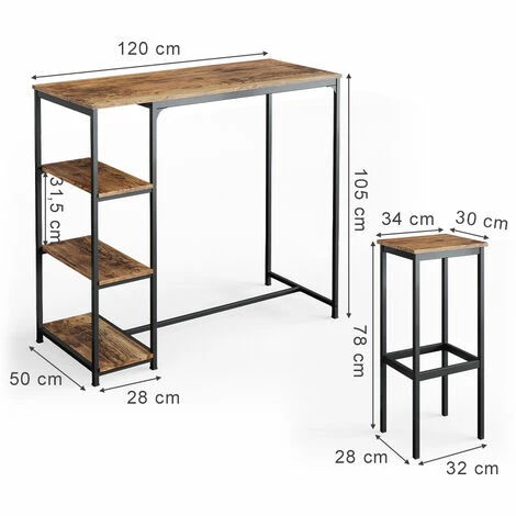 Table de bar : 120 cm x 105 cm x 50 cm (l x h x p)