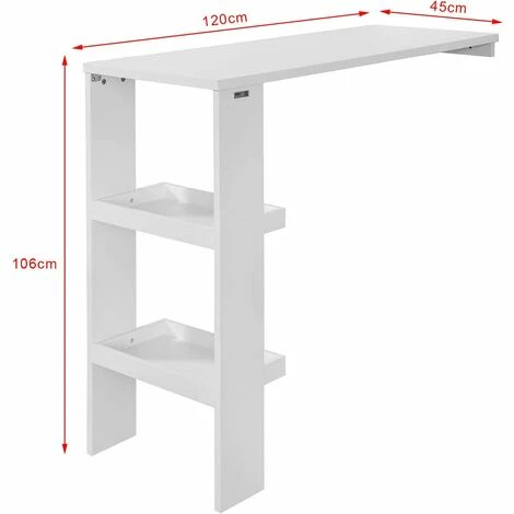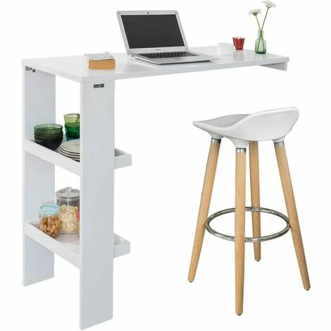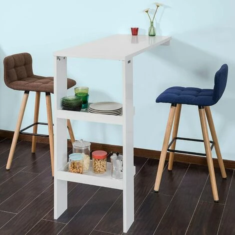 Vente flash 🔥 Table De Bar Murale Table Haute De Bar Mange-Debout Cuisine Avec 2 étagères De Rangement – Blanc FWT55-W SoBuy® 😀
