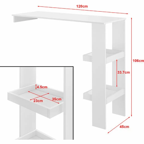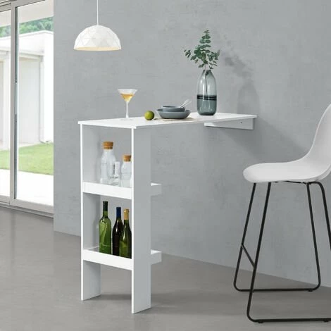 Cette table de bar se fait remarquer non seulement par sa construction originale mais grâce à son design moderne. Elle sera un accessoire fonctionnel et esthétique de votre maison. D’un côté, cette table de bar doit être montée contre le mur. De l’autre côté, vous pourrez profiter des espaces de stockage pratiques.