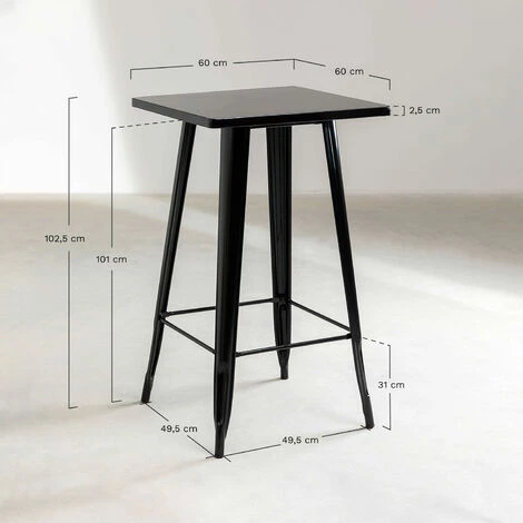 Toute une icône du style Industriel Elle combine à la perfection design et confortStructure et plateau en acierTable haute parfaite pour bar et cuisineUsage exclusivement intérieurElle dispose d’un repose-piedsOriginale, audacieuse et très pratique Présente une finition brillante Dimensions (Hauteur x Largeur x Profondeur): 102,5 cm x 60 cm x 60 cm IMPORTANT : Le service standard porte-à-porte ne comprend pas la livraison et la collecte des marchandises au domicile du client, qui sont à la charge de ce dernier. Il est possible que le livreur aide volontairement à la livraison de la marchandise (ceci est totalement volontaire pour le livreur et la société de transport et ne relève pas de la responsabilité de Sklum).L’assemblage n’est pas non plus inclus.