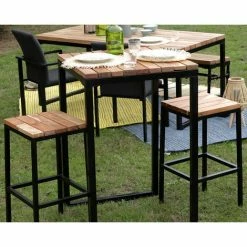 Vente flash 🎉 MEUBLE HOUSE Mange-debout Carré En Bois Exotique 70×70 Cm « Garden » – Marron ✔️
