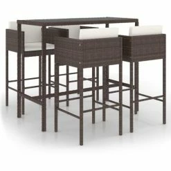 Vente flash 👏 INLIFE Meubles De Bar De Jardin 5pcs Et Coussins Résine Tressée Marron – Brun 😍