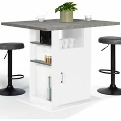 Vente flash ❤️ IDMARKET Ilot Central UGO 110 Cm Plateau Effet Béton Et Blanc Avec Rangements ❤️