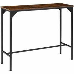 Avec la table haute et étroite Kerry de tectake, montrez votre sens inné de l’aménagement à la fois pratique et tendance. Sa structure ouverte et surélevée donne une impression de légèreté, tout en garantissant une robustesse et une stabilité à toute épreuve grâce aux pieds à vis réglables. Le plateau solide à l’aspect bois chaleureux arbore un joli grain, tandis que le support en acier froid apporte la touche brute indispensable à tout meuble de style industriel. Grâce à son look sans fioritures, cette console au design rectiligne s’intègre sans problème dans de nombreux intérieurs contemporains. Une marque de bon goût où que vous la placiez, dans l’entrée, la cuisine, la salle à manger ou le salon.