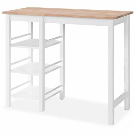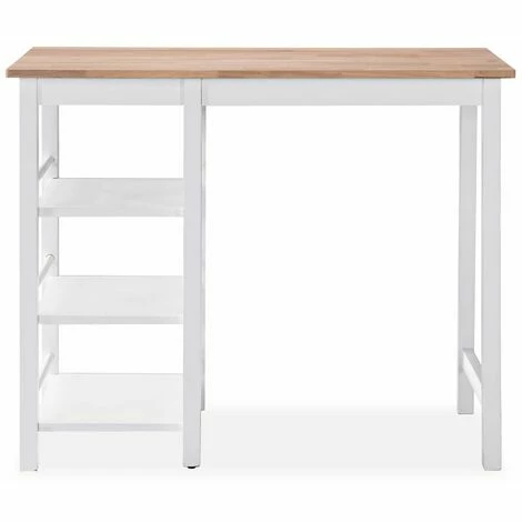 Ce mobilier de bar se compose d’une table et de deux tabourets et a un design classique qui en fera un excellent ajout à votre salle à manger ou salon. Le mobilier est fait de MDF et de bois d’hévéa robuste. Le bois massif et poncé a été peint en blanc pour les cadres, tandis que les sièges et le dessus de table ont une finition à l’huile pour faire ressortir la couleur riche et chaude du bois. Le contraste des couleurs ajoute à l’aspect à la fois simple et élégant de l’ensemble. La grande table de bar comporte trois étagères sur un côté, sur lesquelles vous pouvez ranger des ustensiles de cuisine ou d’autres objets de tous les jours que vous aimeriez garder à portée de main, et les tabourets de bar ont des sièges généreux et ergonomiques.