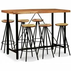 Cet ensemble de bar cool a un style industriel et sera un supplément distinctif à n’importe quelle maison, bar ou restaurant. La table de bar est en bois d’acacia massif qui est durable, stable et facile à nettoyer. Elle est entièrement faite à la main et les beaux grains de bois rendent chaque meuble unique et légèrement différent l’un de l’autre. Les pieds en acier fort rendent la table de bar très robuste et durable et ajoutent à son style industriel spectaculaire. Les tabourets de bar sont faits de bois de récupération massif, ce qui signifie qu’ils ont les caractéristiques de différents bois comme le teck, le bois de manguier, l’acacia, etc. Le bois de récupération est solide, stable, durable et beau. Les signes d’usure donnent à chaque pièce un aspect unique et les pieds en acier s’ajoutent au style industriel spectaculaire. Chaque étape du processus de construction est réalisée avec le plus grand soin, que ce soit la recombinaison, le polissage, la peinture ou le laquage. La livraison comprend 1 table de bar et 6 tabourets de bar. L’assemblage est facile. Remarque importante : Les grains et les couleurs du bois peuvent varier d’une pièce à l’autre, ce qui rend chaque pièce unique et légèrement différente de la suivante ; la livraison est aléatoire.