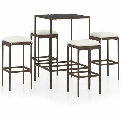 Cet élégant ensemble de bar de jardin offre un endroit agréable et confortable afin que vous puissiez profiter du temps avec votre famille et vos amis. Cette table de comptoir dispose d’un cadre en acier enduit de poudre recouvert de résine tressée résistante à l’eau, assurant des années d’utilisation à l’extérieur. De plus, le dessus de table en verre trempé facilite le nettoyage. Les tabourets ont un solide cadre en acier et sont fabriqués en résine tressée résistante aux intempéries, ce qui garantit leur stabilité et leur facilité de déplacement. Le coussin d’assise et le repose-pied intégré ajoutent également au confort d’assise du tabouret. Remarque : Afin de prolonger la durée de vie de vos meubles d’extérieur, nous vous recommandons de les nettoyer régulièrement et de ne pas les laisser à l’extérieur sans protection inutilement.Nettoyage : Utiliser une solution savonneuse douceStockage: Si possible, stockez dans un endroit frais et sec à l’intérieur. Si le produit est stocké à l’extérieur, protégez-le avec une housse imperméable. Essuyez et séchez l’excès d’eau ou de neige des surfaces planes après la pluie ou une chute de neige. Permettez une circulation d’air suffisante afin d’éviter les dommages liés à l’humidité.