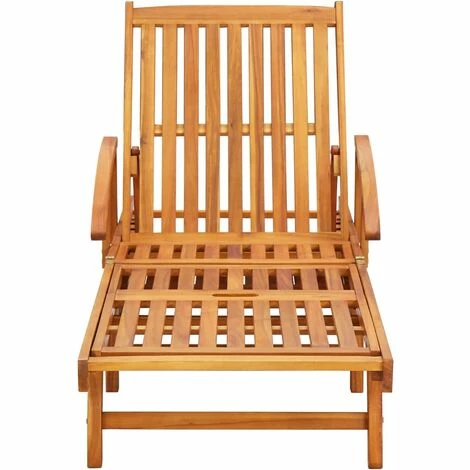 L’ensemble de chaises longues en bois avec la table au design unique est un excellent supplément à votre jardin, patio ou terrasse. Cet ensemble de salon d’extérieur a une construction solide en bois d’acacia massif avec une finition à l’huile, ce qui le rend stable et durable. Le dessus de table solide peut être utilisé pour afficher des petits objets et les garder à portée de main. La chaise longue est également équipée de deux roues pour régler facilement sa longueur. La chaise longue et la table peuvent être repliées pour économiser de l’espace lorsqu’elles ne sont pas utilisées. Remarque importante : les couleurs et les grains varient d’une pièce à l’autre, rendant chaque meuble unique ; La livraison est également aléatoire.