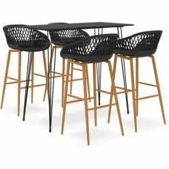 Avec un design moderne et contemporain, notre ensemble de bar est idéal pour les maisons, jardins, bars, pubs ou restaurants modernes. Son design épuré et contemporain complétera toute décoration intérieure. Le dessus de table est en MDF, facile à nettoyer. Le cadre métallique enduit de poudre ajoute à la stabilité et à la robustesse de la table de bar. Les tabourets de bar ont un siège ergonomique avec un dossier bas intégré avec un aspect de maille. Fabriquées en PP robuste et soutenues par des solides pieds en métal avec une impression par transfert de chaleur en aspect bois, ces chaises de comptoir sont robustes et durables.