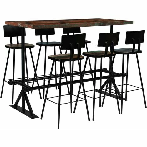 Cet ensemble de bar de style rétro dégage un charme industriel et sera un supplément intemporel à votre maison. La table et les chaises de bar sont faites de bois massif de récupération provenant de solives, de planchers et de poutres de soutien de vieux bâtiments en cours de démolition, et peuvent être composées de différents types de bois comme pin, teck, hêtre, chêne, cèdre, bois de manguier, acacia, etc. Cela signifie que le bois de récupération conserve les caractéristiques de ces différents types de bois. Le bois récupéré est déjà vieilli, patiné et séché, donc il ne rétrécit pas et ne se plie pas. Les belles fibres du bois rendent chaque meuble unique et légèrement différent des autres. Les signes d’usure et la structure du grain visible donnent également à l’ensemble sa propre histoire et un aspect unique. Chaque étape du processus est réalisée avec le plus grand soin, que ce soit le polissage, la peinture ou le laquage. La structure en acier assure la robustesse et la stabilité de l’ensemble tout en contribuant à son style industriel. Les repose-pieds ajoutent au confort d’assise. L’assemblage est facile. La livraison comprend 1 table de bar et 2 chaises de bar. Remarque importante : Les couleurs varient d’une pièce à l’autre, ce qui rend chacun de nos articles unique ; la livraison est aléatoire.