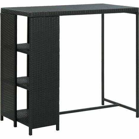 La table de bar avec étagère de rangement est un choix parfait pour toute maison, jardin, bar, pub, restaurant, etc. Cette table de bistro est faite de résine tressée et cadre en acier, ce qui la rend durable et stable. Le support de rangement latéral comprend 3 étagères et offre un espace de rangement supplémentaire pour vos articles à portée de main. Grâce à sa construction légère, la table de salle à manger est également facile à déplacer.