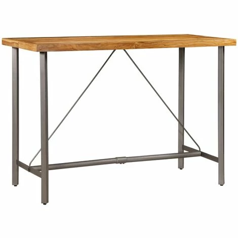 Cette table de bar sera un excellent supplément à votre cuisine ou salle à manger. Le dessus de table est en teck recyclé, un bois solide, stable, durable et magnifique. Les pieds en acier contribuent à la robustesse de la table ainsi qu’à son style industriel. Un soin tout particulier est apporté à chaque étape du processus de fabrication, qu’il s’agisse du polissage ou du laquage. La table de bar est facile à assembler. Remarque importante : les couleurs et les grains du bois peuvent varier d’une pièce à l’autre, ce qui rend chaque article unique et légèrement différent l’un de l’autre ; la livraison est aléatoire.