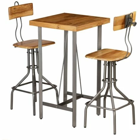 La table et les chaises de bar sont en teck recyclé, un bois solide, stable, durable et magnifique. Les cadres en acier contribuent à la robustesse de l’ensemble ainsi qu’à son style industriel. Le dessus de table se nettoie facilement à l’aide d’un chiffon humide. Les repose-pieds des chaises contribuent au confort d’assise de l’ensemble. Un soin tout particulier est apporté à chaque étape du processus de fabrication, qu’il s’agisse du polissage ou du laquage. L’ensemble de bar est facile à assembler. La livraison inclut 1 table et 2 chaises de bar.