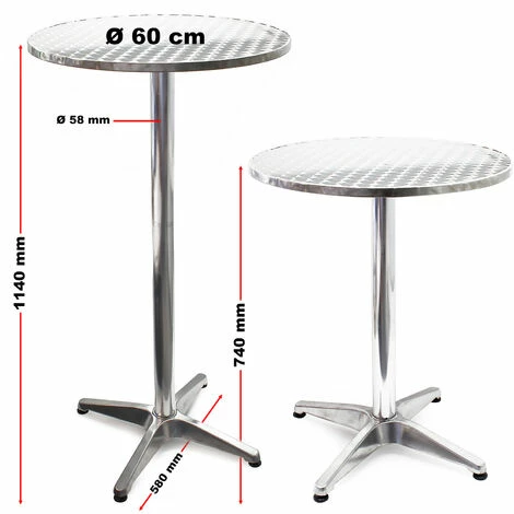 Table de bistro en aluminium réglable en hauteur 70/110 cm Ø 60 cm