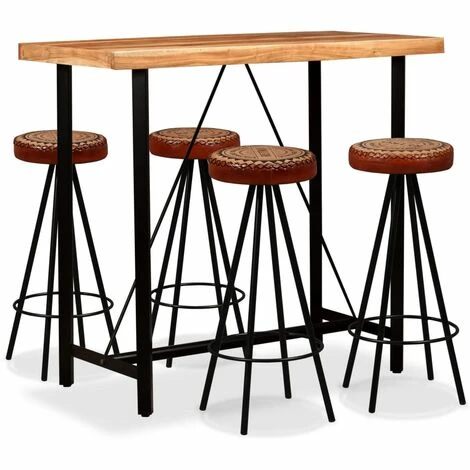 Grosses soldes 👏 YOUTHUP Ensemble De Bar 5 Pcs Bois D’acacia Cuir Véritable Et Toile – Brun 😀
