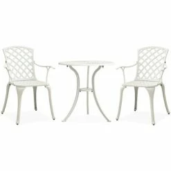 C’est un grand plaisir de discuter avec vos amis ou de prendre une tasse de thé ou de café tout en vous relaxant sur cet ensemble de bistro décoratif et fonctionnel. Les chaises et la table sont en aluminium coulé résistant aux intempéries, vous pourrez donc profiter de l’ensemble de bistro pour de nombreuses années à venir. Ces chaises de jardin disposent de hauts dossiers et de sièges avec un design creux. Les accoudoirs incurvés et ergonomiques peuvent détendre efficacement vos bras. La table robuste dispose de beaux motifs et est adapté pour placer des boissons, de la nourriture et d’autres essentiels. Cet ensemble de mobilier d’extérieur est parfait pour les brunchs au matin ou les longues conversations à l’après-midi.